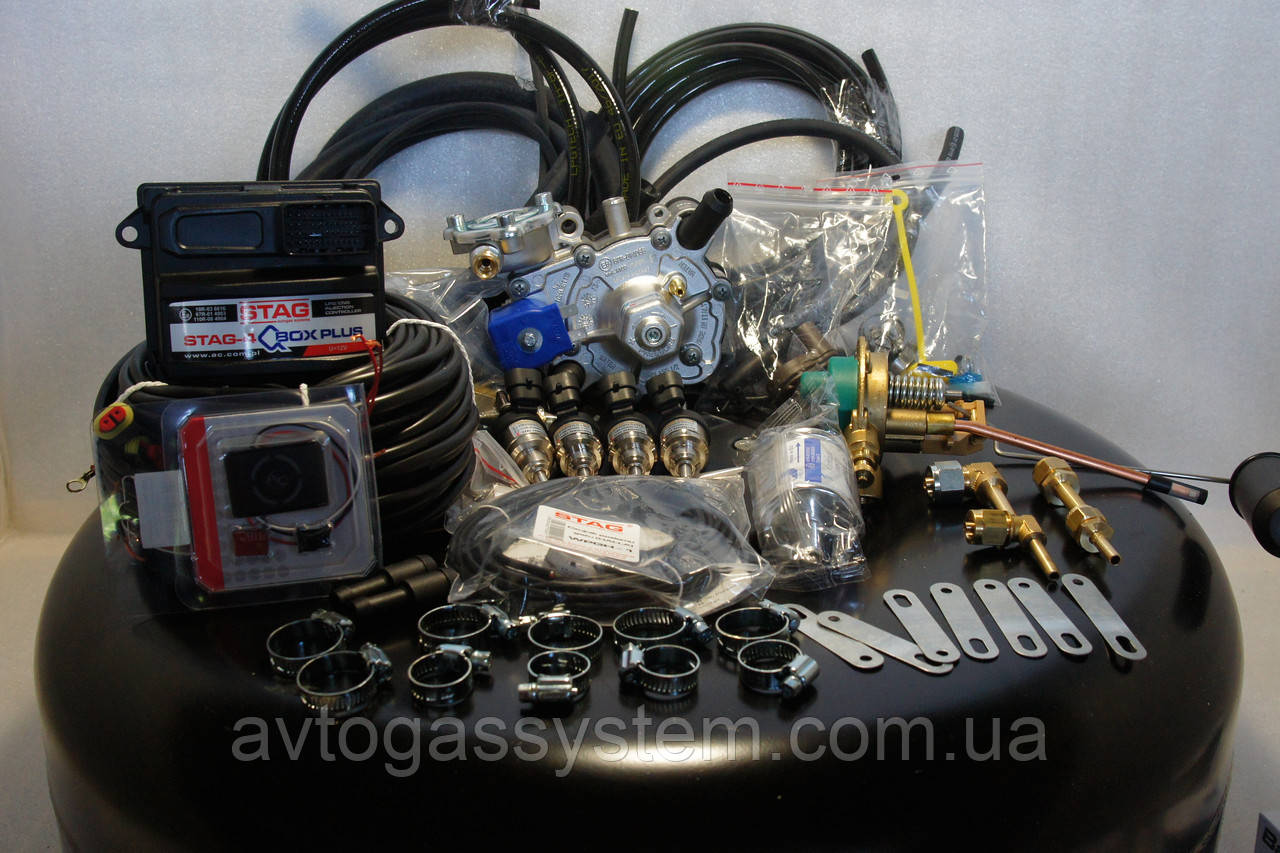 - Електроніка Stag Qbox PLUS (Польща) (Блок керування, датчик тиску Мар sensor, дріт, кнопка перемикання, передавач рівня палива)